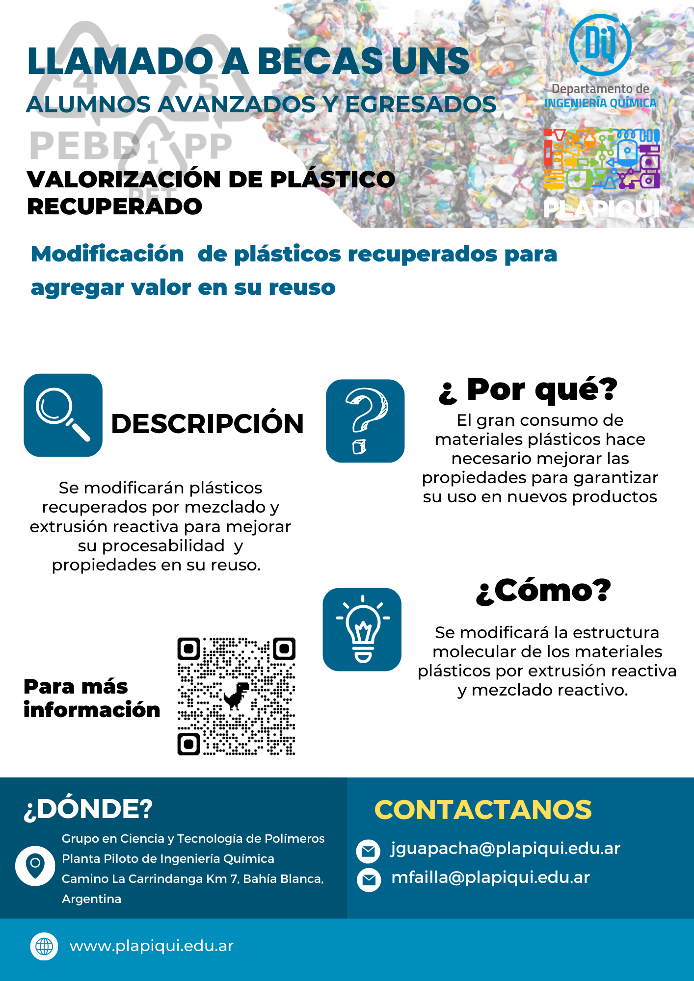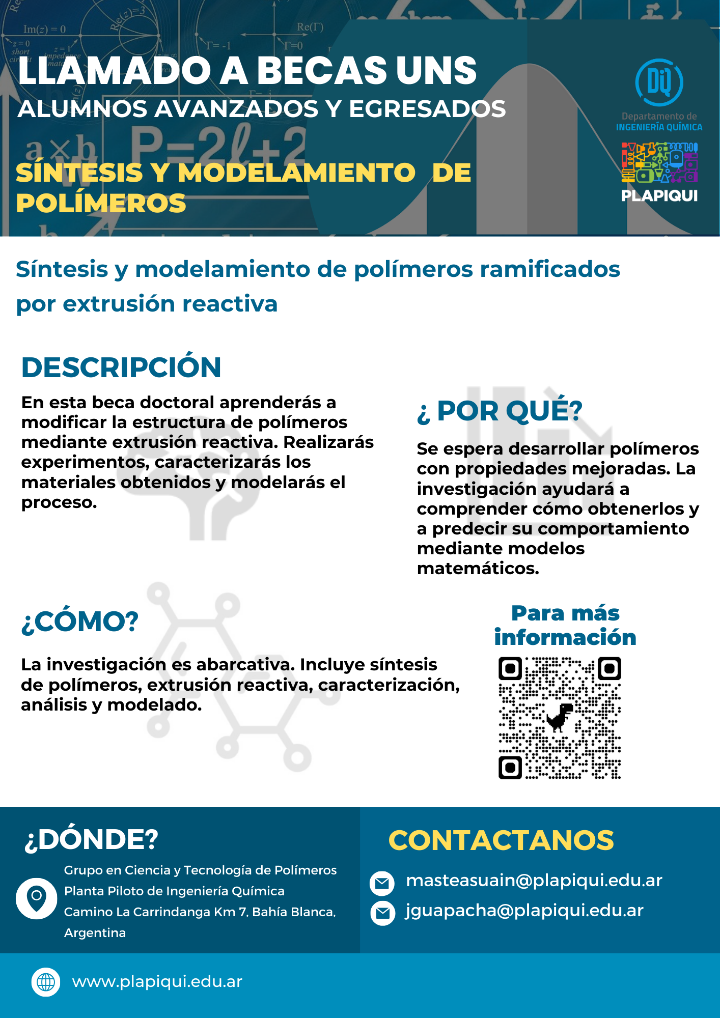 Convocatoria para Becas en Plapiqui. Comienza el 01/04/2026. Duración: 5 años.