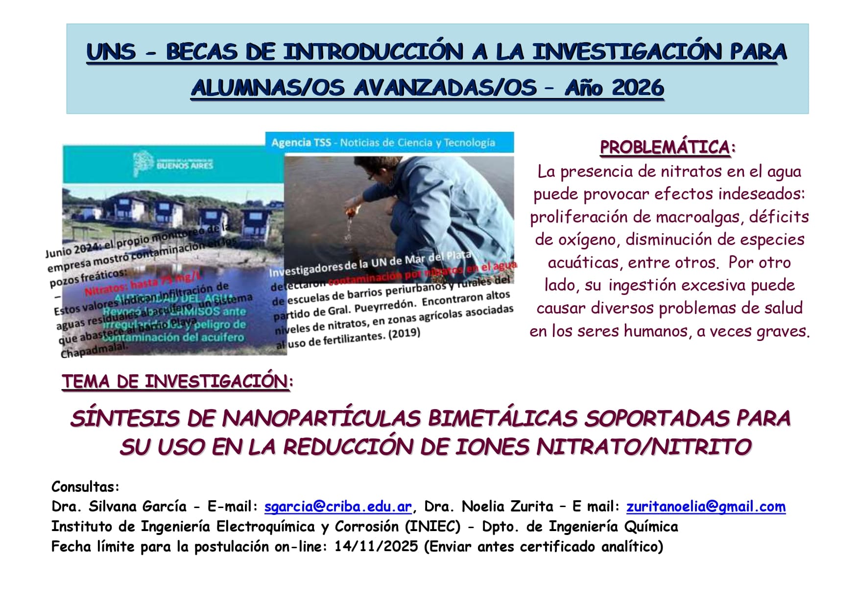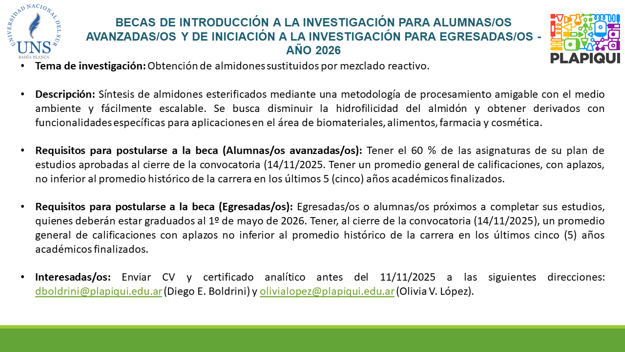 Convocatoria para alumnos avanzados de Ingeniería Química cuyo tema de investigación es