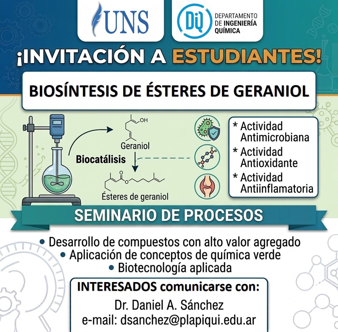 Título del seminario: "Biosíntesis de Ésteres de Geraniol".