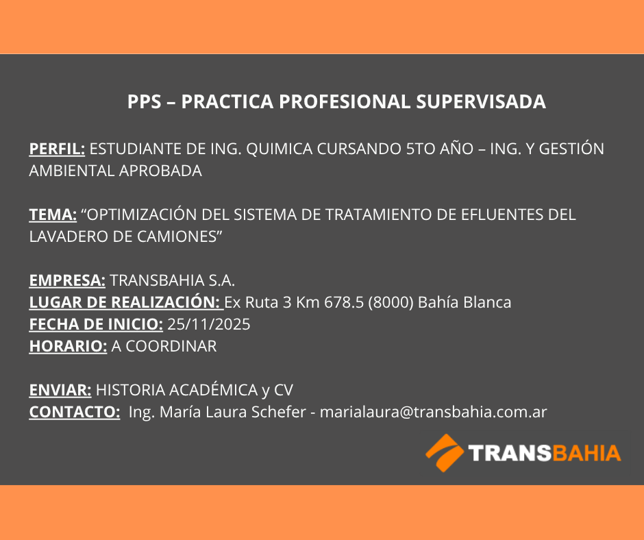 Se encuentra abierta la búsqueda de postulantes para Práctica Profesional Supervisada en la empresa TransBahía.