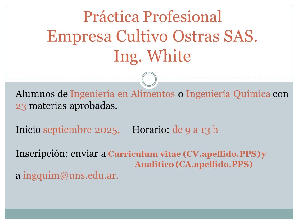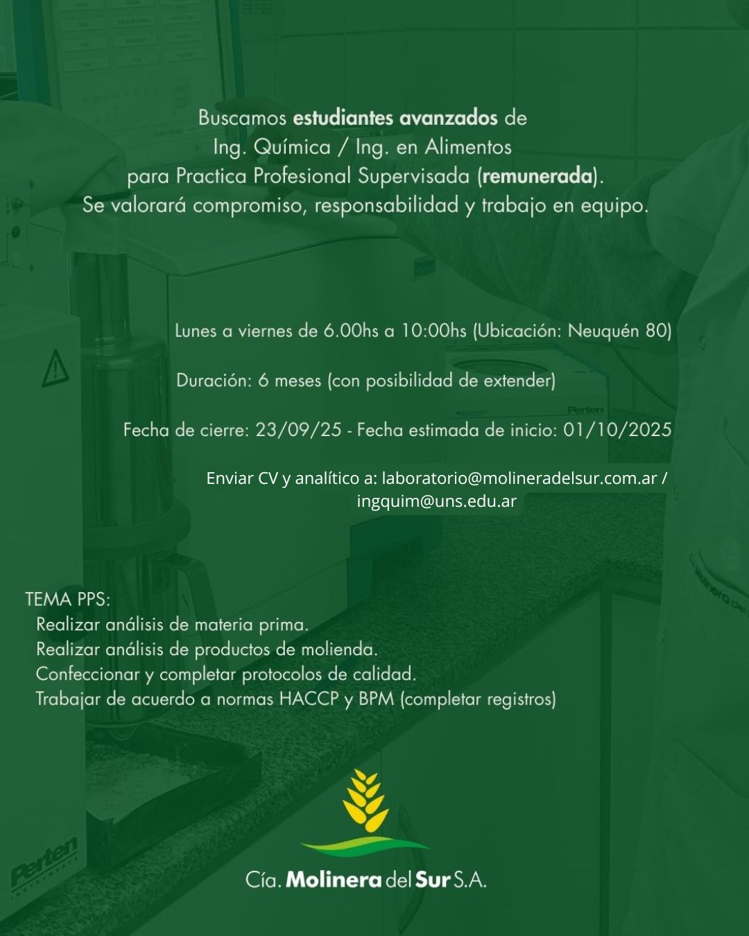 Tecnicatura en Operaciones Industriales) con interés en adquirir experiencia práctica en el sector.